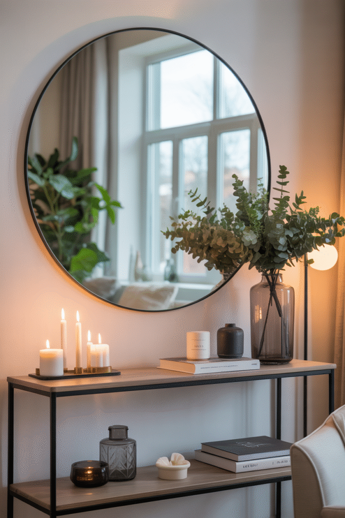 - Use a mirrored side table or decor piece to subtly enhance brightness.