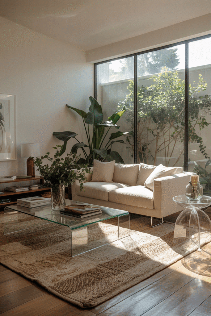 - Use transparent materials: Glass or acrylic tables visually “disappear,” freeing up sight lines.