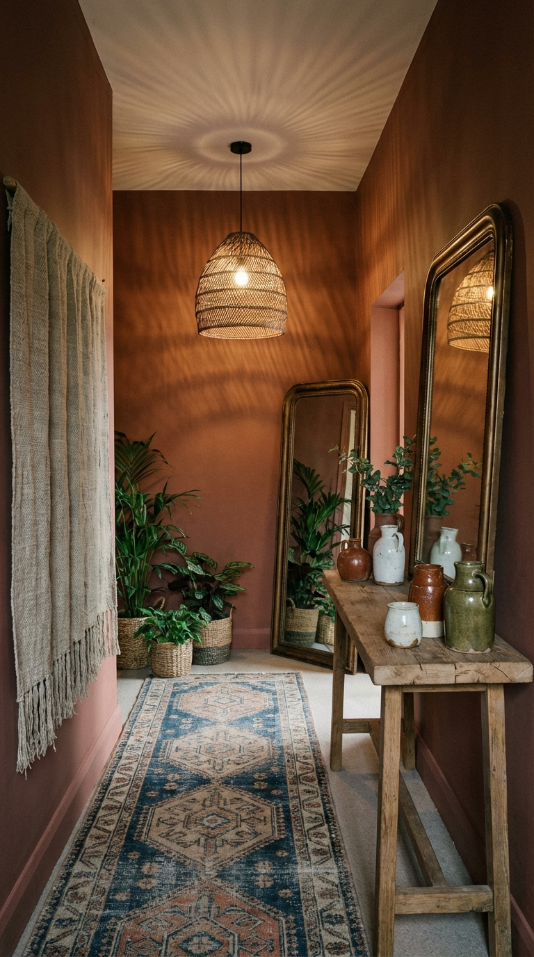 - Choose one dominant wall tone in a warm, muted shade (clay, sand, or soft terracotta).