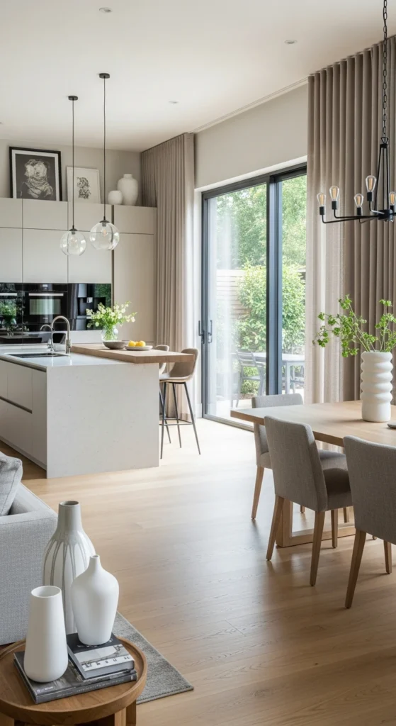 Full-Length Drapes in an Open-Plan Kitchen-Diner