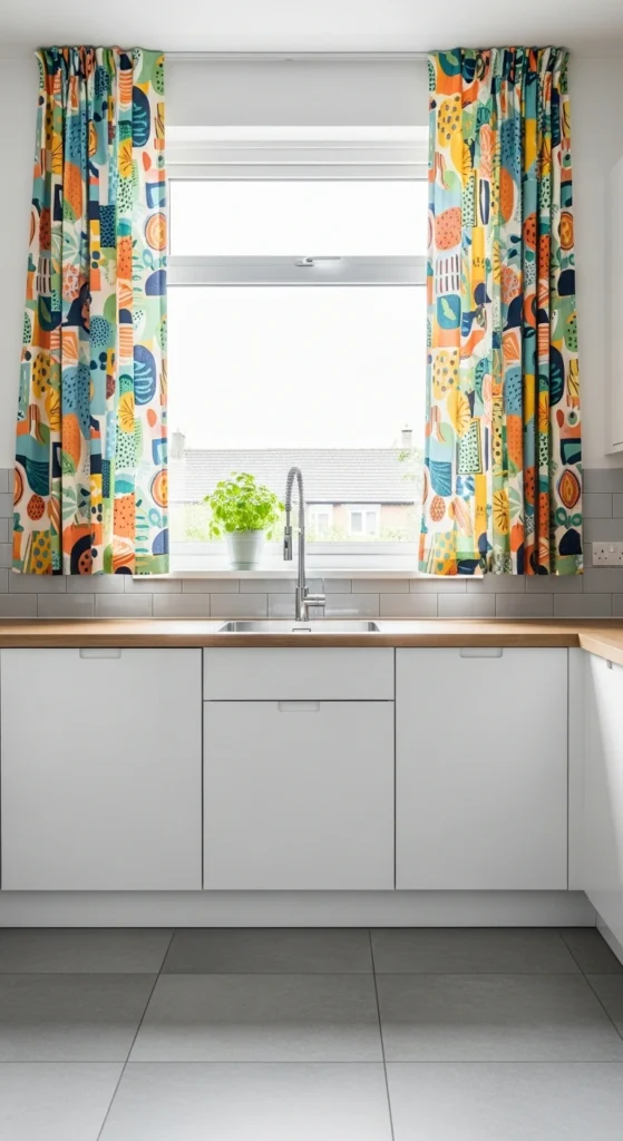 Patterned kitchen drapes can bring life to a simple cooking space faster than any paintbrush ever could. They add personality where tile might fall short, especially if your backsplash leans minimalist. When you repeat one or two colors from the pattern elsewhere—maybe a dish towel or a fruit bowl—the whole kitchen feels more intentional. It’s a playful, low-commitment way to give the room some character without touching a single cabinet.