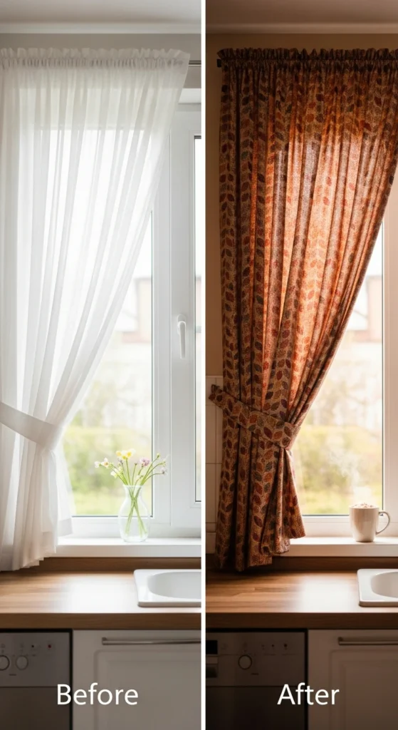 Rotating your kitchen drapes with the seasons gives the whole room a mood refresh without spending a weekend painting cabinets. Light sheers brighten spring and summer, while richer patterns or heavier fabrics bring warmth when the weather cools. It’s a simple ritual that keeps the kitchen feeling fresh year-round. Plus, swapping drapes takes about five minutes—far less time than reorganizing that mysterious drawer everyone avoids.
