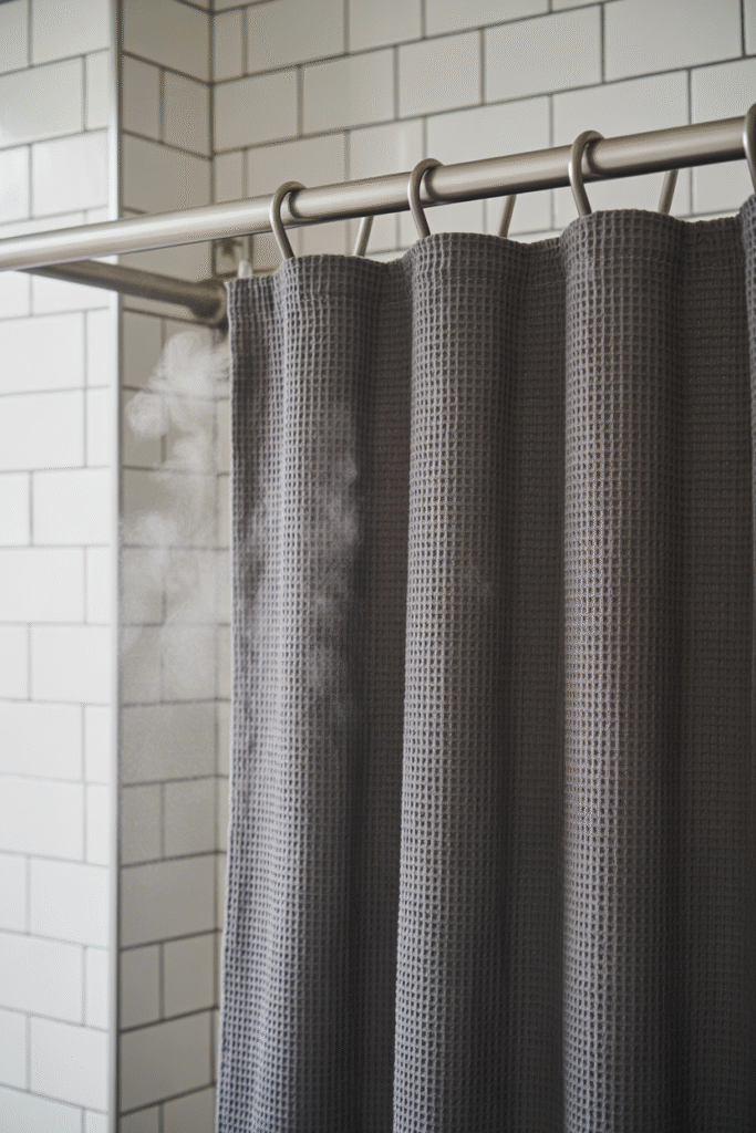Modern microfiber curtains are surprisingly insulating and quick-dry—good for cold drafts and fast turnarounds between showers.
