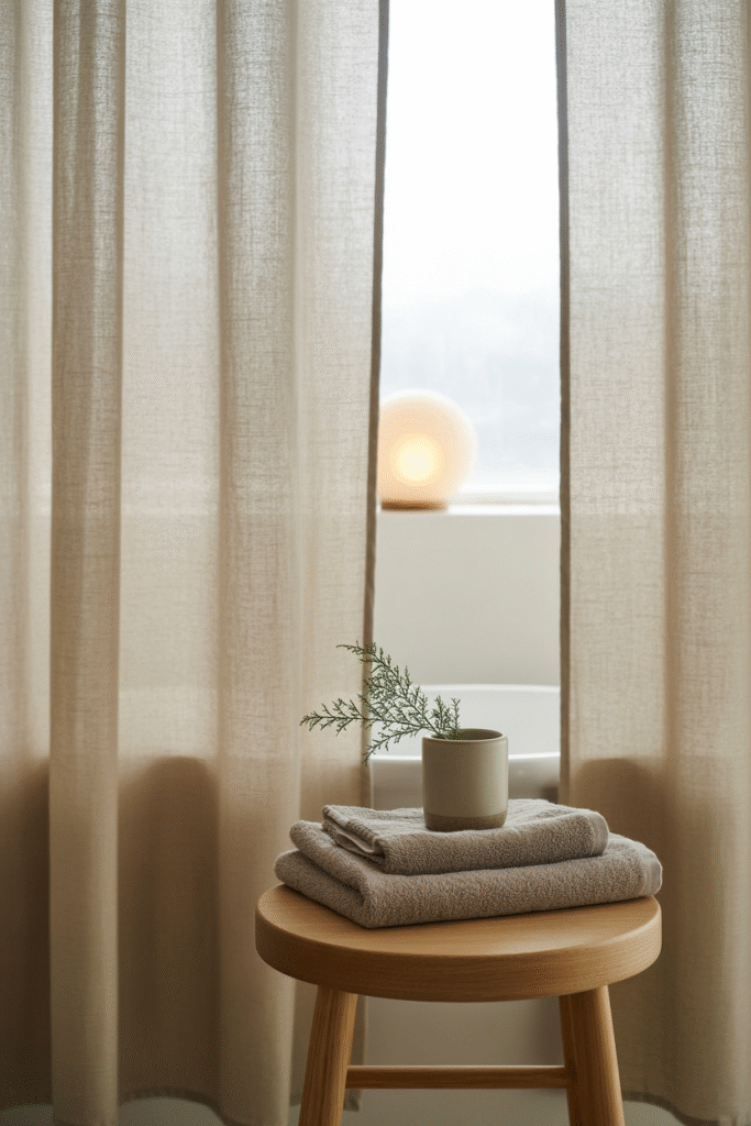 2) Linen-Blend Curtain with a Thermal Liner (Japandi Warmth)