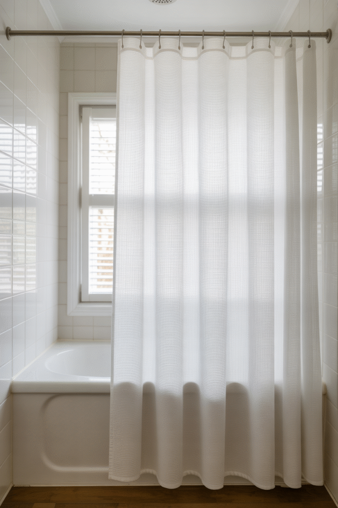 - $15–$30: PEVA or basic polyester; great for renters/guest baths.