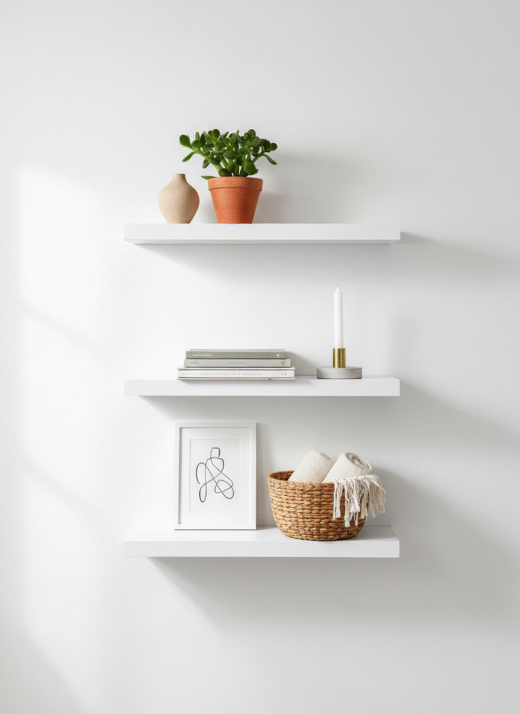 Free up floor space by mounting your TV directly on the wall. Similarly, opt for floating shelves instead of floor-standing units. This creates a clean, streamlined look and leaves more room for movement and other essential furniture.