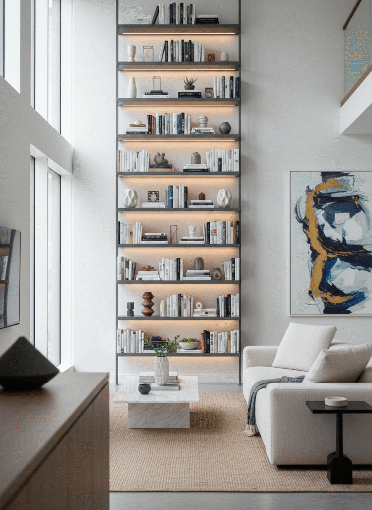Think up! Install tall, narrow bookshelves or wall-mounted shelving units instead of wide, bulky ones. This draws the eye upwards, creating an illusion of height and freeing up precious floor space. Display curated decor and essential storage.