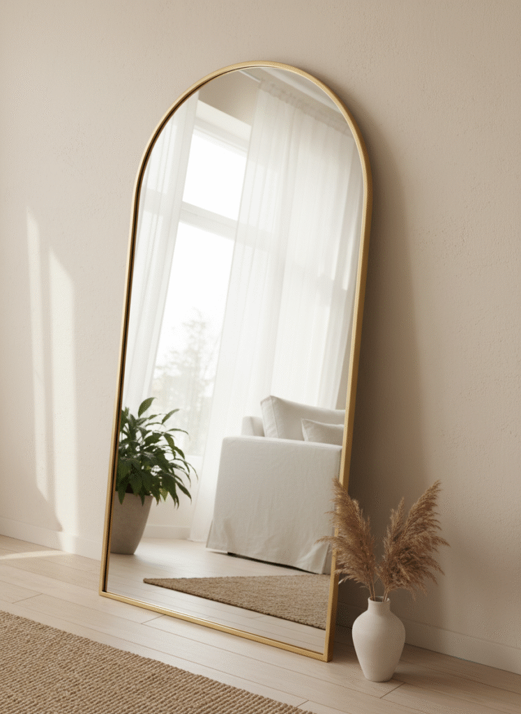 Strategically place large mirrors to bounce light and create an illusion of depth. A full-length mirror leaning against a wall or a gallery of smaller mirrors can visually double your room’s size, adding a touch of elegant reflectivity.