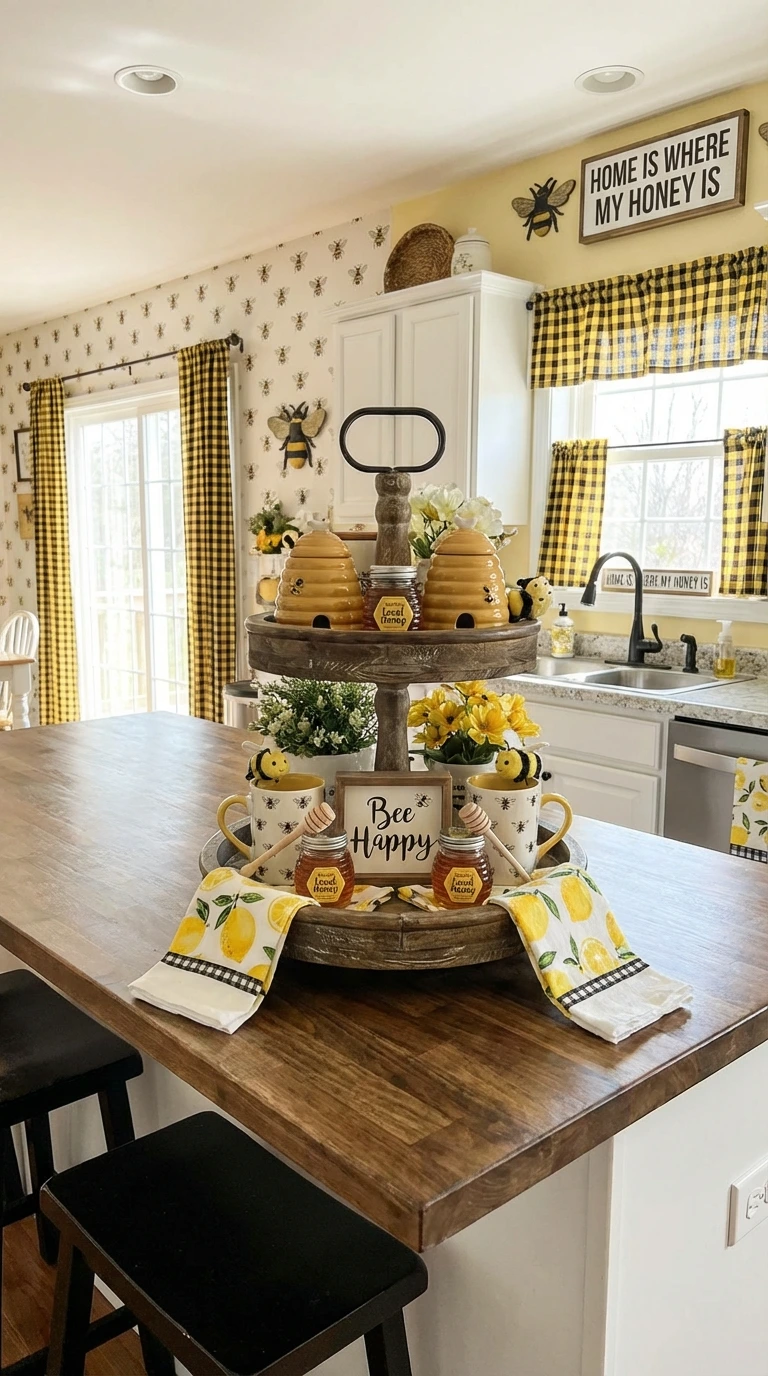 Witty truth: Bee decor is bold. Keep it to one zone so your kitchen does not turn into a gift shop aisle.