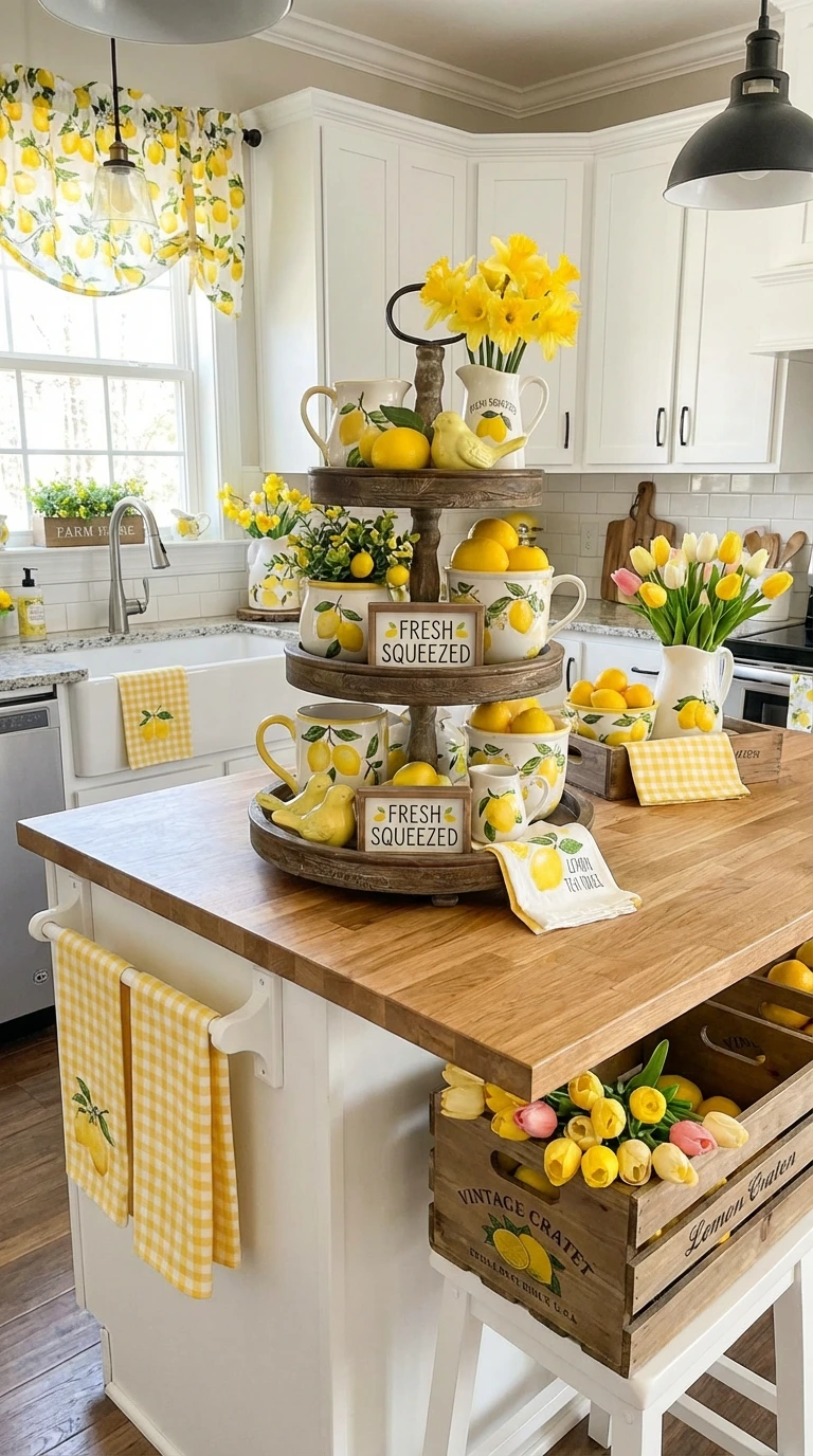 As spring turns into heat season, keep the same base and shift it into a Lemon Tiered Tray For Summer with: