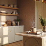 The soft lighting in this scene highlights taupe’s most alluring quality — its ability to shift subtly throughout the day, from soft latte tones in the morning to richer mocha hues under evening light. It’s a color that feels alive, breathing warmth into the kitchen without demanding attention.