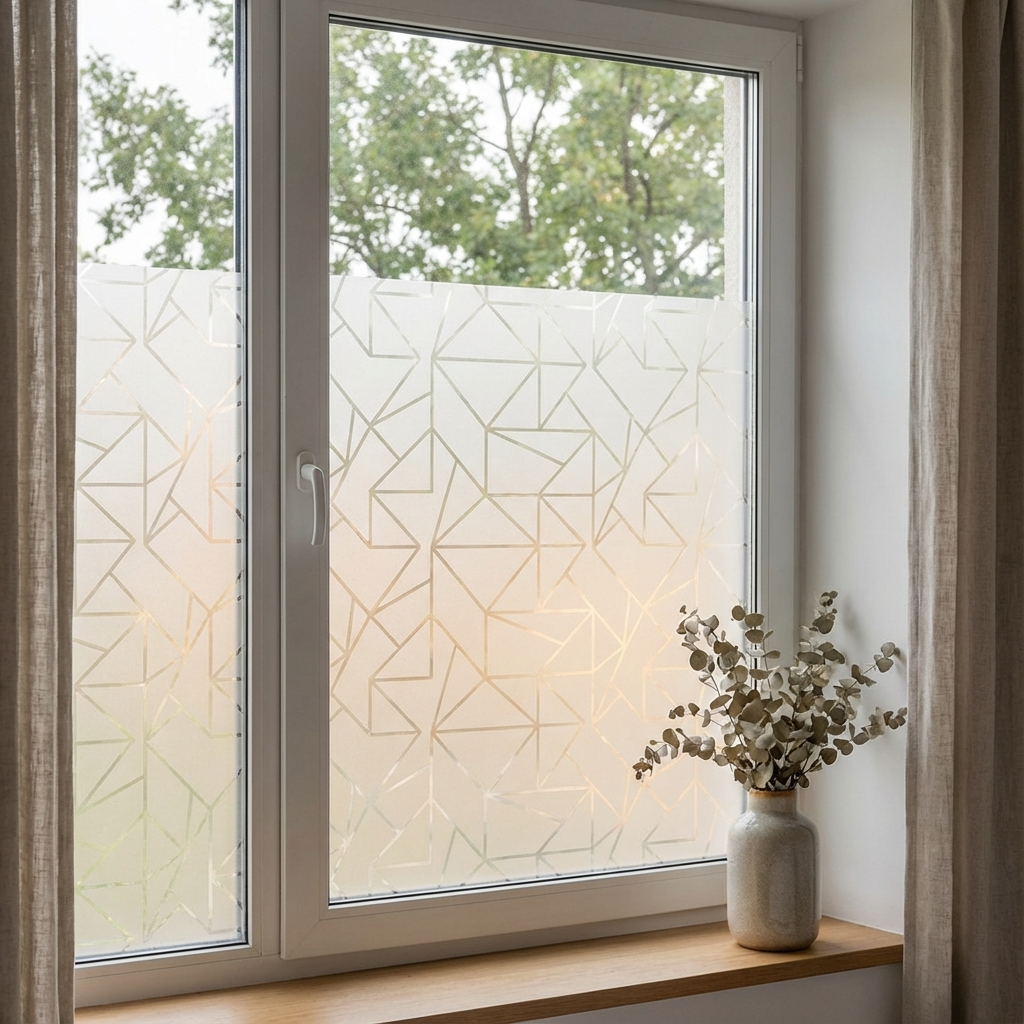 Window film is a modern, budget-friendly solution for bedrooms that face busy streets or close neighbors but still require natural light. Unlike heavy curtains, frosted film obscures the view completely while allowing diffused sunlight to enter. This is particularly effective for bottom-sash windows or unique architectural shapes (like arches) that are difficult and expensive to dress with fabric.
