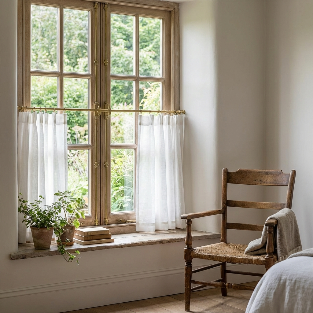 Once reserved for kitchens, café curtains are making a resurgence in bedroom design, particularly in vintage, cottage, or European-inspired spaces. By covering only the bottom half of the window, they provide essential privacy from passersby while leaving the top open to maximize daylight. This style uses significantly less fabric than full drapes, making it a cost-effective choice.