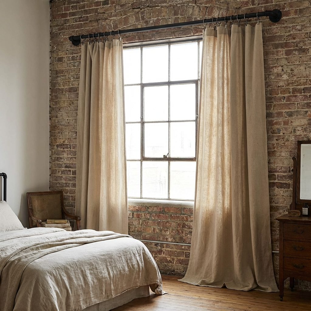 Linen offers a breezy, relaxed aesthetic that softens the rigidity of square windows. Pure linen wrinkles easily, so a linen-poly blend is often preferred for bedroom drapery as it maintains the textured look while draping more elegantly and resisting creasing. These curtains work beautifully in neutral palettes, adding subtle visual interest through their weave rather than bold patterns.