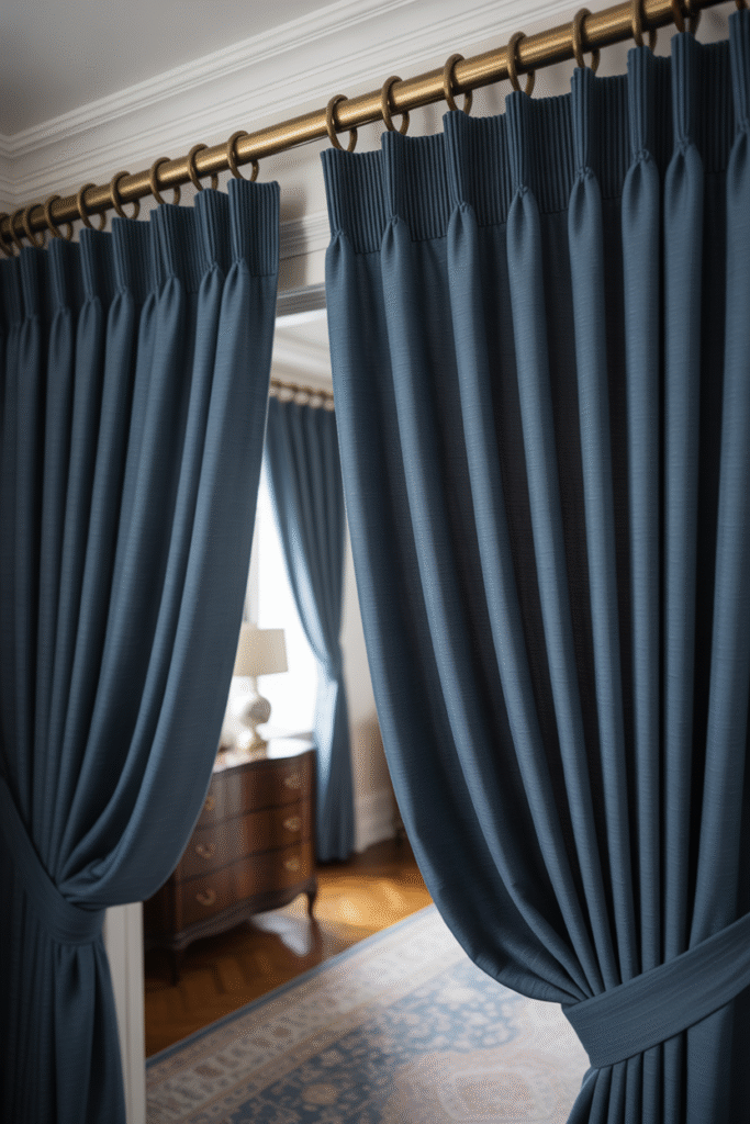 Pinch pleat curtains have gathered fabric at the top that creates structured, tailored folds. They’re the traditional choice for formal or classic bedroom designs, and they have a polish that’s hard to replicate with other styles.