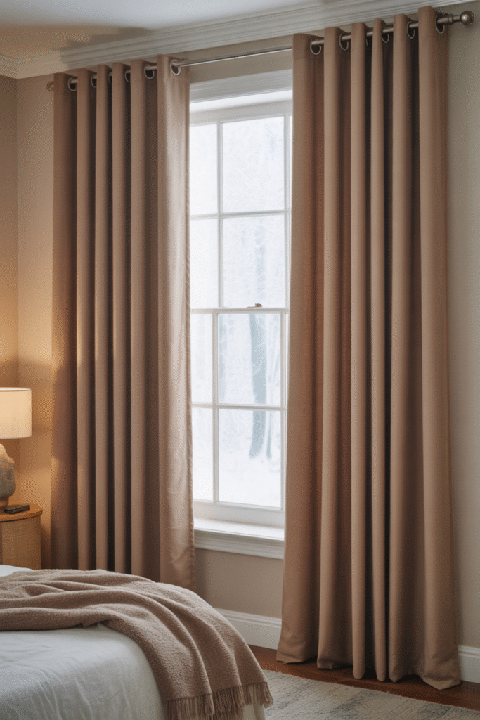 Modern thermal curtains don’t look obviously “functional” the way they used to. You can find them in attractive colors and fabrics that blend seamlessly with your bedroom decor. Look for options with a decorative outer layer and thermal backing—you get style and substance.