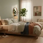 For the best look, hang them so they just kiss the floor or have a 1-2 inch break. This length makes your ceilings look higher without the high-maintenance puddle that collects dust. Choose colors like warm white, oatmeal, or soft gray—these work with practically any bedroom style and won’t compete with your other design choices.