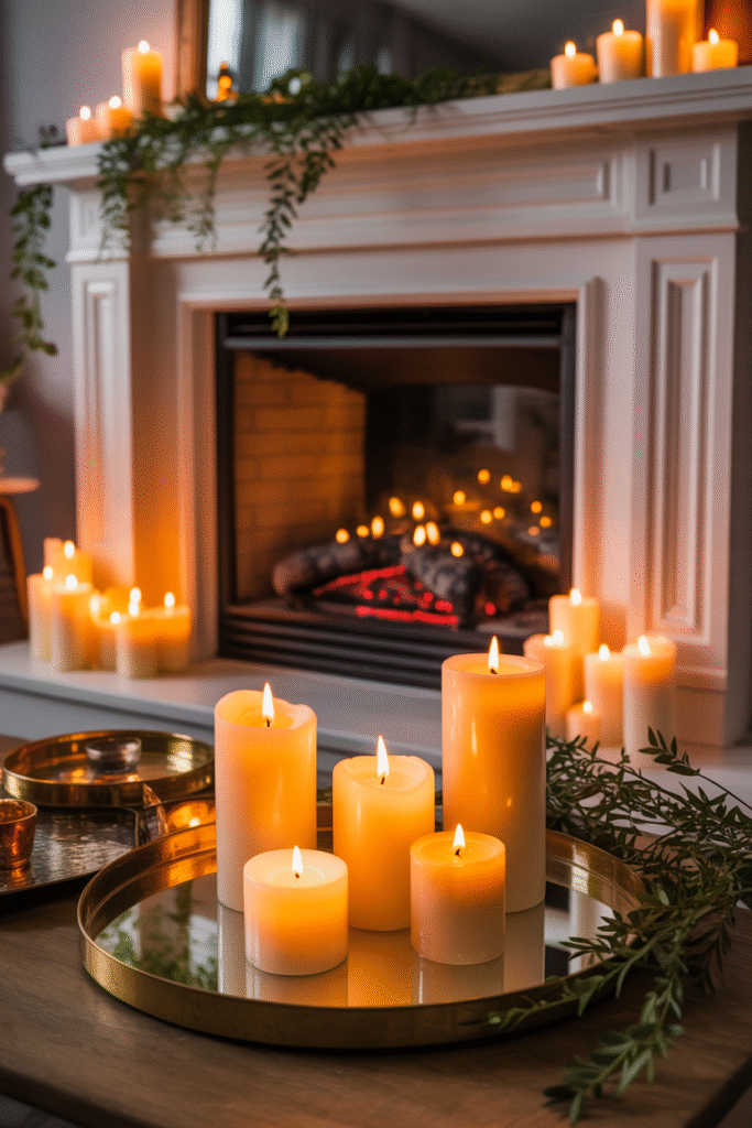 Group candles of varying heights on trays or mirrored surfaces to bounce light around.