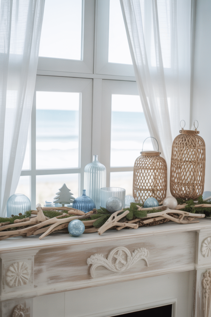 Go for driftwood garlands, white coral accents, and blue-gray ornaments. Pair them with sea-glass tones and sandy neutrals for a relaxed coastal vibe.