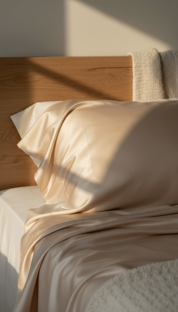 Your face and hair spend hours pressed against a pillow, so the material matters. Silk pillowcases reduce friction, which helps prevent sleep creases and frizz. They do not absorb moisture like cotton, meaning your expensive night creams stay on your face. The cool surface feels incredibly refreshing when you first lie down.