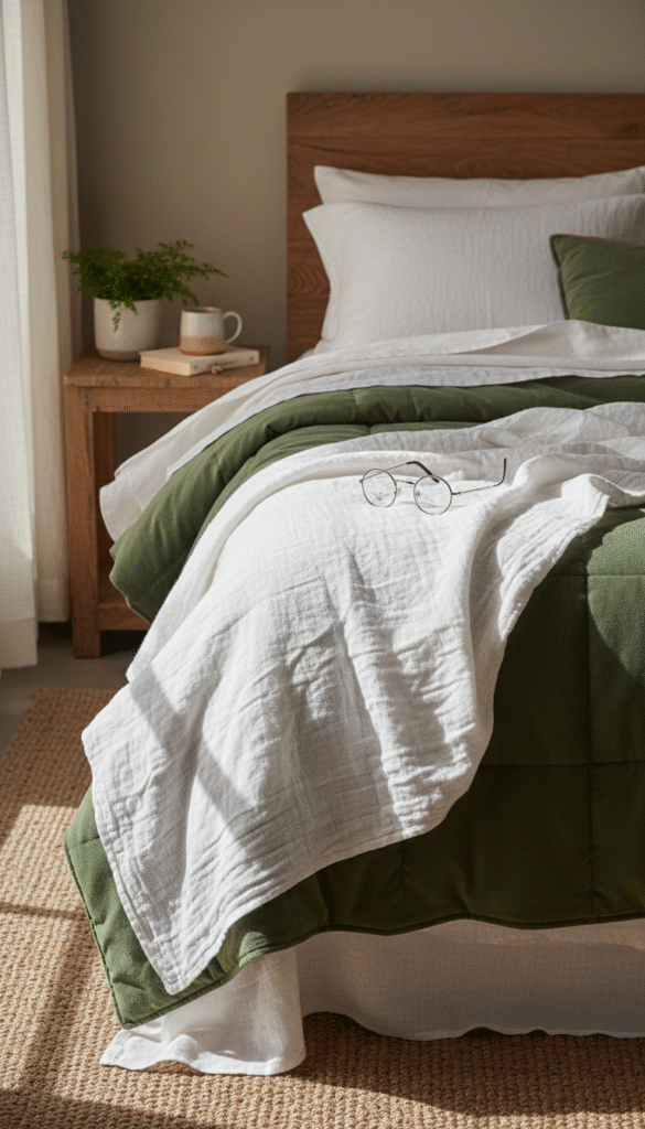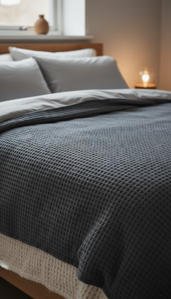 Texture is the secret ingredient to a cozy visual aesthetic. A waffle weave duvet cover brings a three-dimensional element to the bed that feels substantial yet lightweight. The honeycomb pockets trap just enough warmth to keep you cozy without overheating. This fabric resists wrinkles better than flat cotton, keeping your bed looking tidy.