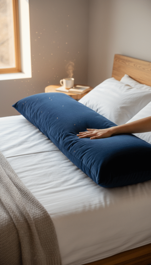 Side sleepers often need extra support for their hips and shoulders to stay comfortable. A full-length body pillow provides alignment support that standard pillows cannot match. Wrapping it in a velvet cover turns a medical necessity into a stylish decor element. The velvet adds friction, so the pillow stays in place throughout the night.
