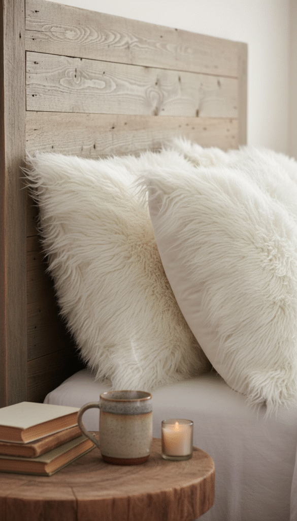 Euro shams add height and drama to your bed arrangement, but choosing faux fur turns them into cozy backrests. They provide a soft, warm surface for reading in bed or sipping morning coffee. The texture breaks up the monotony of flat sheets and duvet covers. High-quality faux fur looks incredibly luxe without the guilt.
