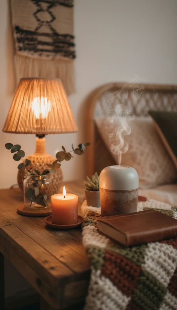 - Candles or diffusers with notes of cedar, sandalwood, amber, or sage