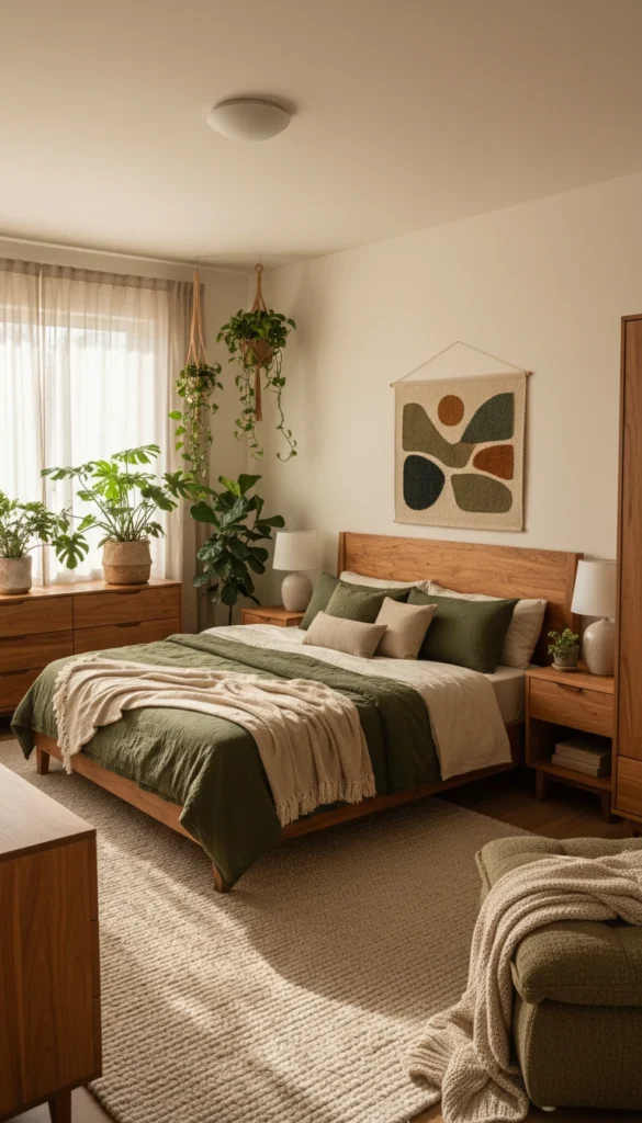 There’s something about an earthy bedroom that makes you breathe a little deeper the second you walk in. Warm woods, soft fabrics, and grounded colors feel like a hug after a long day.