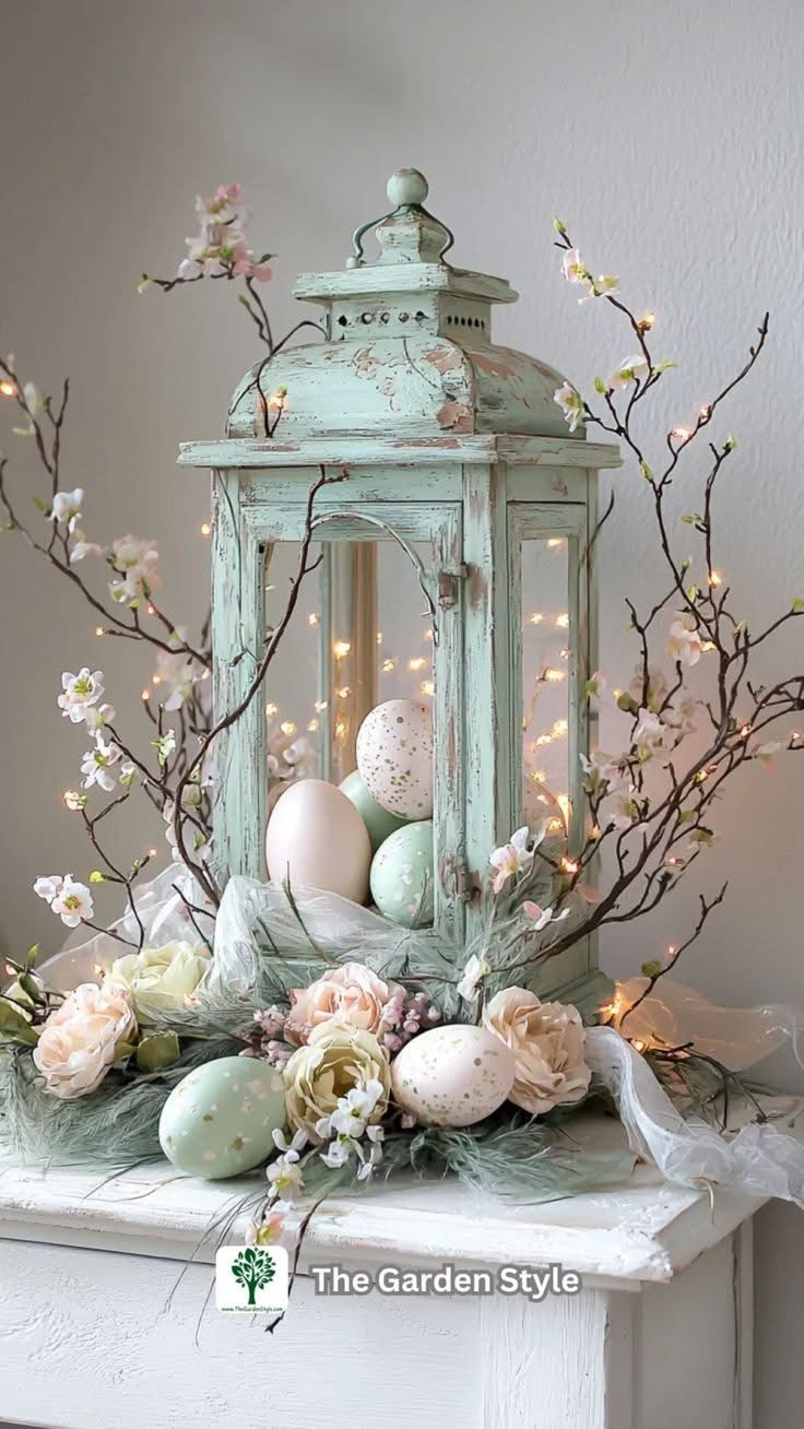 A lightly distressed or vintage-style lantern adds warmth and texture. Soft pastel finishes work especially well for spring.