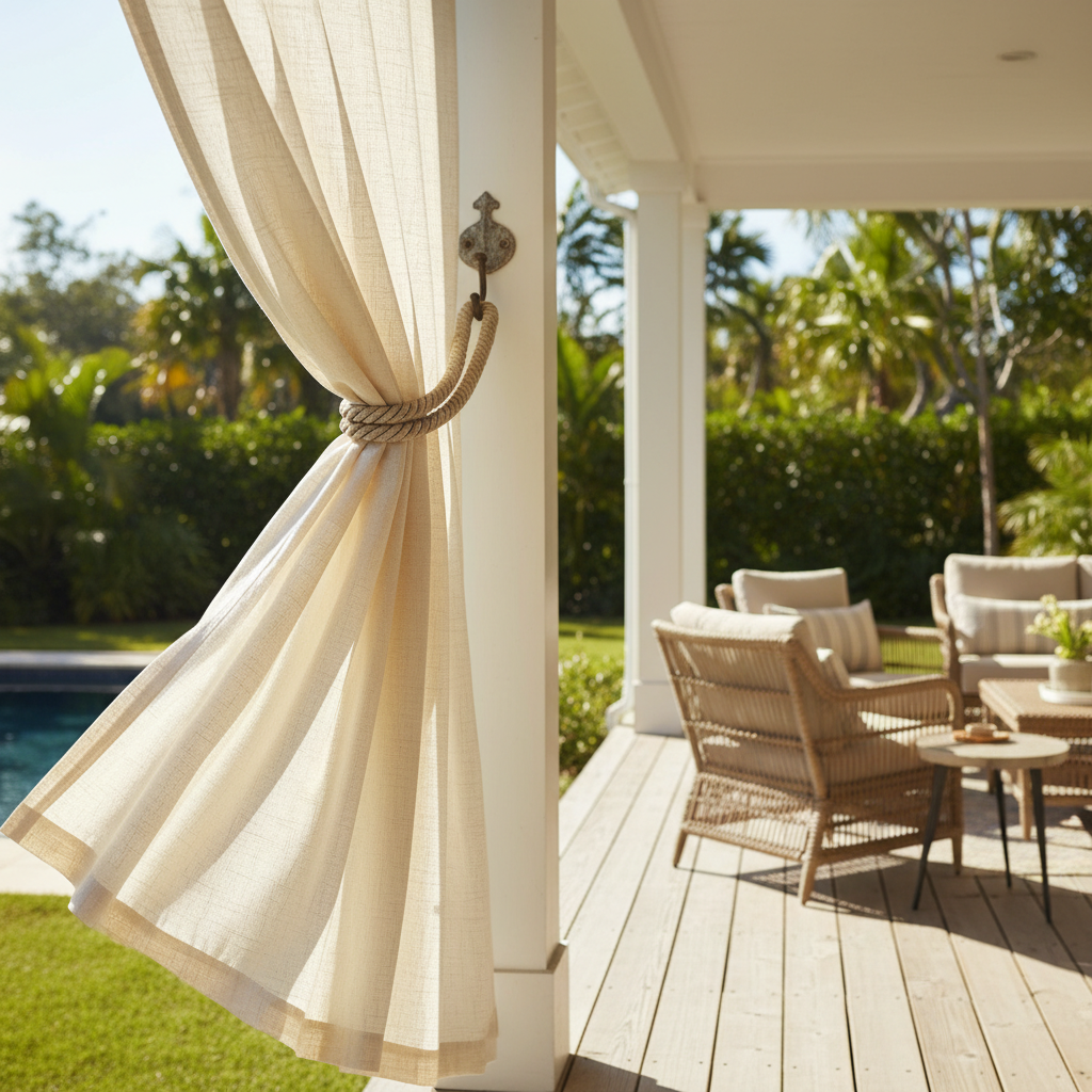Choose tie-backs that complement your curtain fabric and porch style, from rustic rope to elegant magnetic clasps. This practical feature ensures your curtains are both functional and aesthetically pleasing, adapting to your needs.