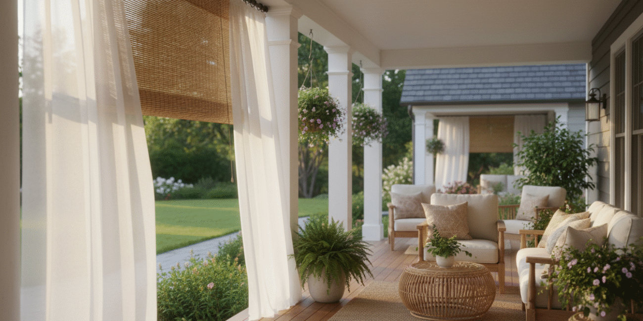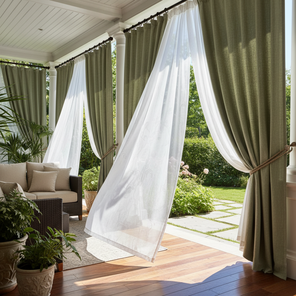 For instance, pair sheer voile curtains with heavier thermal panels on a double rod to achieve both airy diffusion and robust protection. This versatile system ensures your porch remains comfortable and stylish through all conditions.