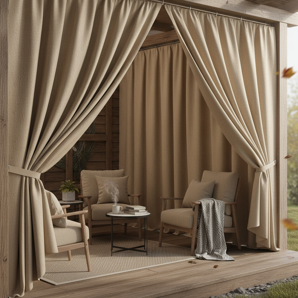 Thermal insulated curtains are designed to help regulate temperature, keeping your porch cooler in summer and potentially warmer in cooler months. Their multi-layered construction provides an effective barrier against extreme temperatures and strong winds.
