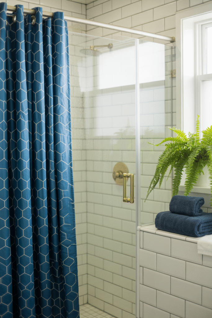 The glass acts as your neutral canvas, letting you swap curtains seasonally or whenever you’re ready for a change. It’s like having removable wallpaper for your shower—all the impact, none of the commitment.