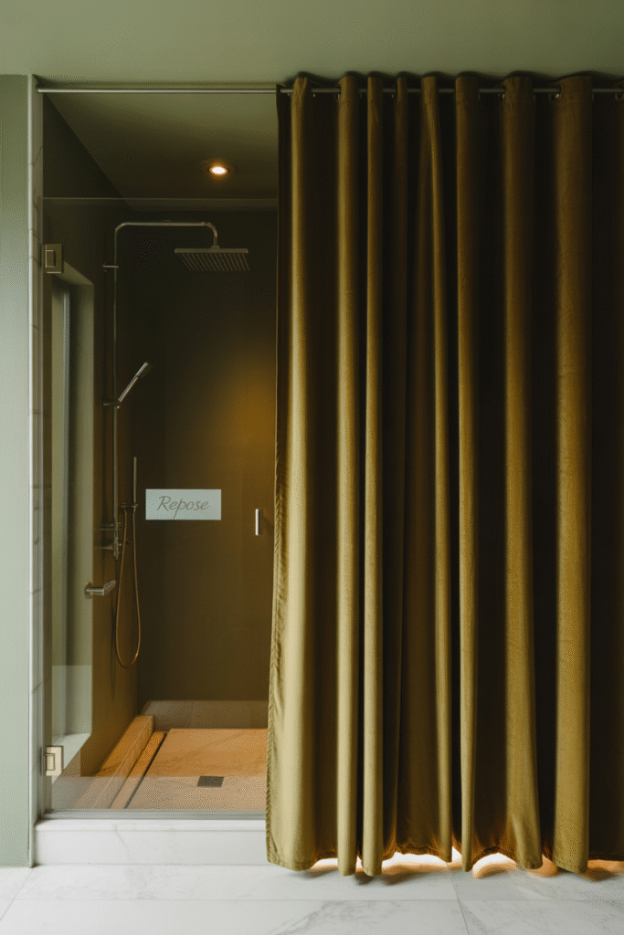Choose deep colors or rich textures: charcoal velvet, thick waffle weave in graphite, or even a washed linen in deep olive. The weight and richness of the fabric turns your daily shower into a sensory experience—you’re not just seeing luxury, you’re feeling it in the way the curtain moves and hangs.