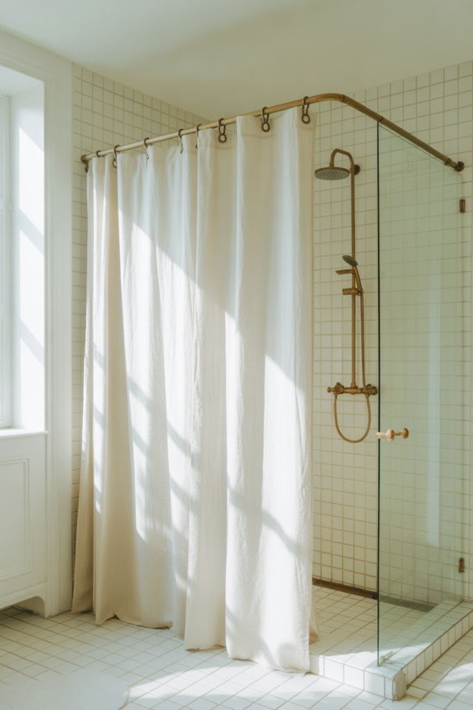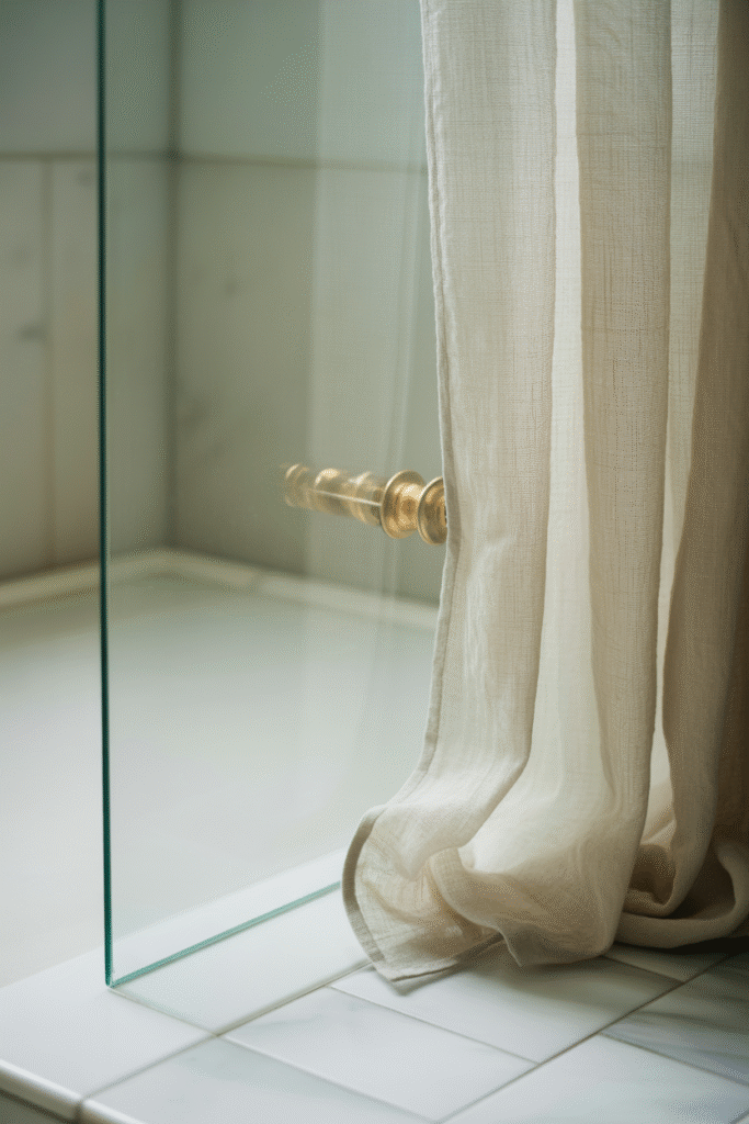I started seeing this trend take off when my sister renovated her master bath. She’d installed a beautiful frameless glass enclosure but felt the space looked too cold, too clinical. Adding a linen curtain on a brass rod transformed everything—suddenly the bathroom felt like a spa retreat instead of a hotel. That’s when I realized this wasn’t just about aesthetics. It’s about creating a space that feels both polished and lived-in.