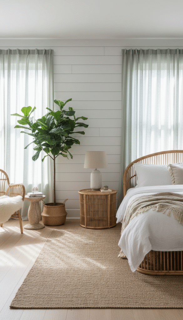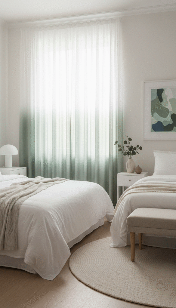 The gradient effect is soft, dreamy, and artistic. Fading from deep sage at the bottom to white at the top keeps the room feeling airy while anchoring the space. It draws the eye upward and makes windows feel taller and lighter.