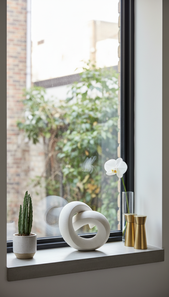 This approach works especially well with modern window sill styling, where clean lines and negative space matter. The empty area around the object becomes part of the design, and the window feels calm and uncluttered.