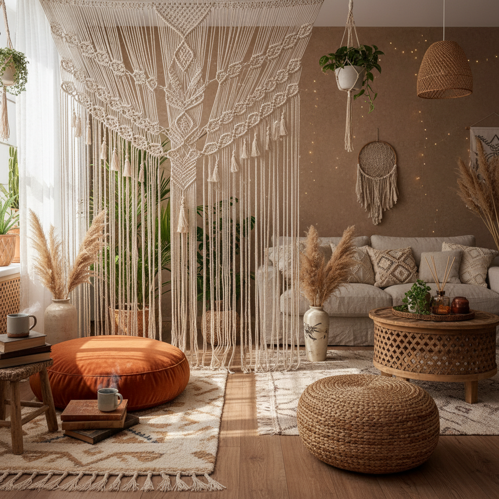 Rope or macrame partitions offer a unique, bohemian-inspired way to softly divide spaces with texture and visual lightness. These handcrafted dividers introduce a relaxed, artistic element to open-plan designs.