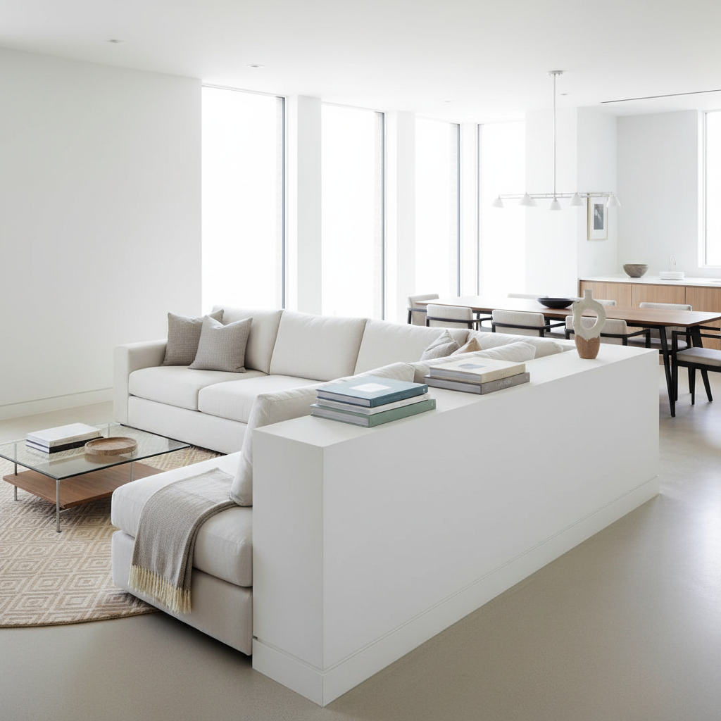 These low-height partitions effectively separate the living and dining rooms, often serving as a backdrop for furniture placement. Half walls offer a semi-permanent solution that balances openness with clear spatial definition.