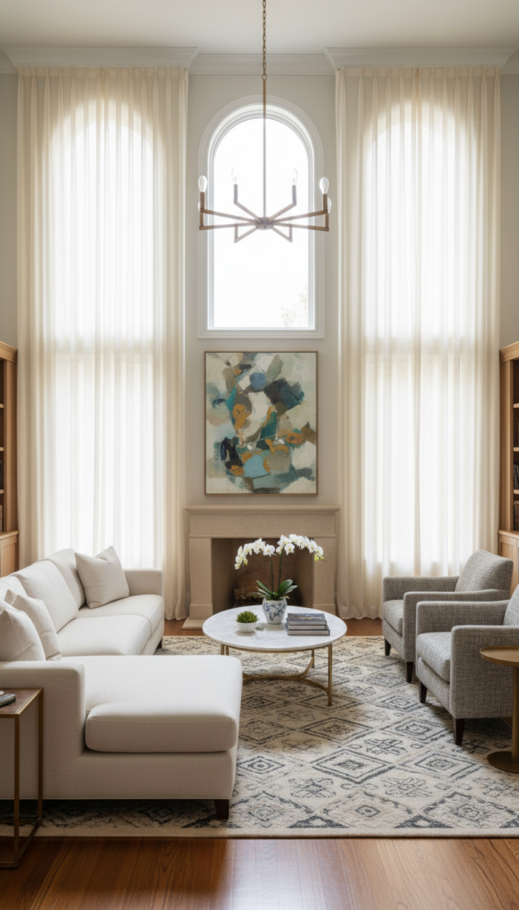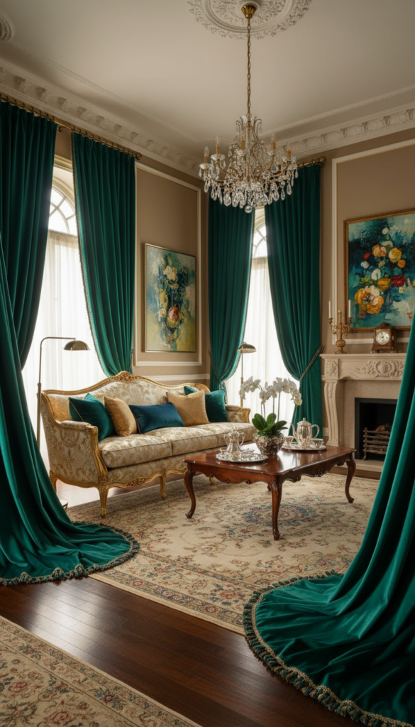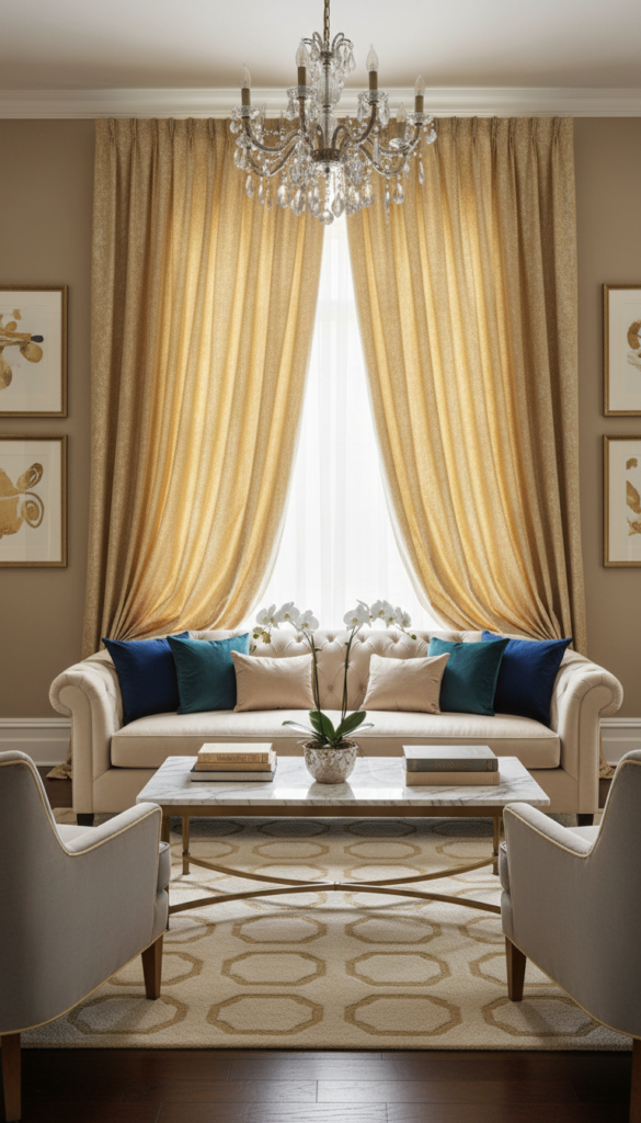 Floor-to-ceiling drapes are a powerful statement in luxury curtains living room design. Extending curtains from the ceiling to just graze the floor dramatically increases the perceived height of your room. This creates an expansive, grand ambiance.This style provides an elegant and continuous line, drawing the eye upwards. For spaces with luxury curtains living room double height, this approach is essential. It delivers an impactful, custom-tailored appearance that speaks volumes of sophistication.> Key Takeaway: Always measure precisely to ensure your elegant curtains living room luxury long just kiss the floor, avoiding puddling unless a very specific, traditional look is desired.