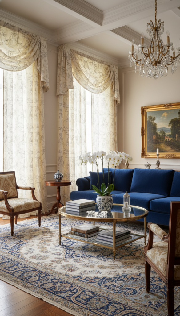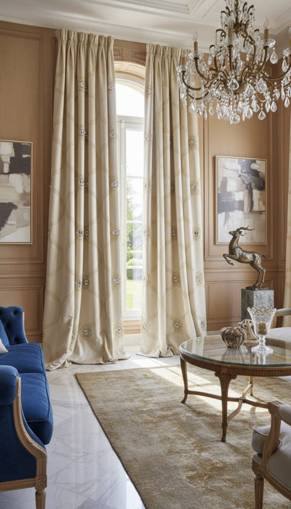 Introduce personality and visual interest with patterned luxury curtains for living room. Intricate embroidery or sophisticated patterns can transform plain windows into focal points. These designer curtains living room luxury add a unique artistic touch.Choose subtle tone-on-tone designs or bold, statement-making motifs. From damasks to modern geometrics, patterned luxury curtains are an ideal way to infuse character. They blend seamlessly into elegant curtains living room luxury interior design schemes.> Pro Tip: If your walls or furniture are boldly patterned, opt for a more understated, luxury textured curtains for living room to maintain balance.