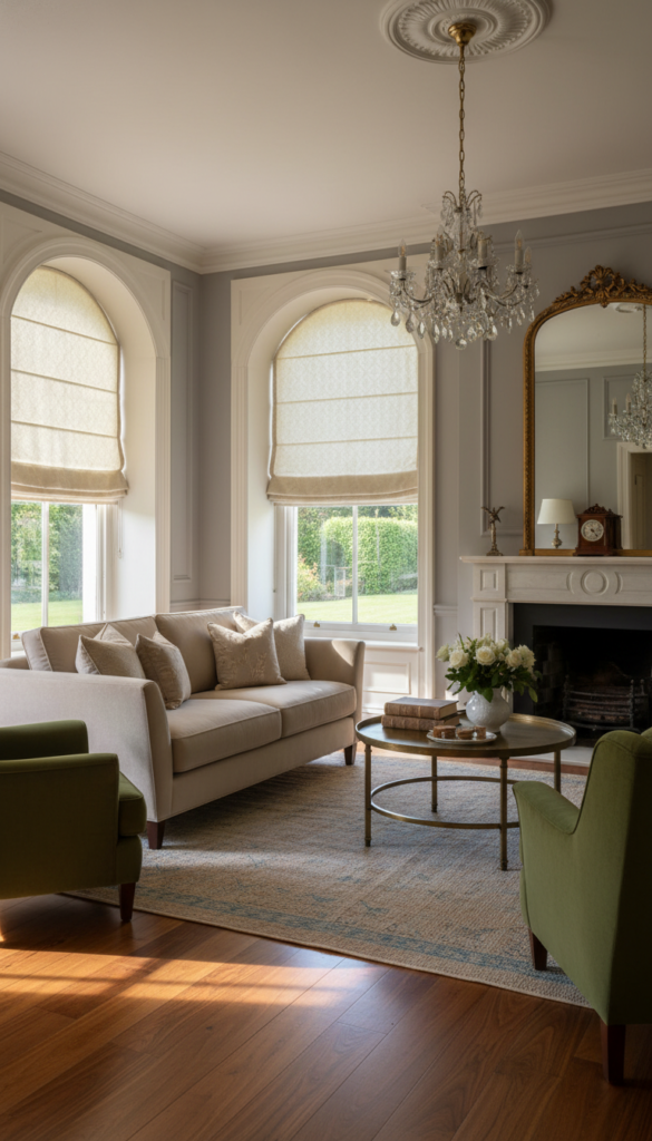 Roman curtains living room luxury modern blend classic design with contemporary fabrics. These blinds fold neatly into elegant pleats when raised, offering a clean, tailored look. When lowered, they display the full beauty of their luxury fabric.Opt for textured weaves, subtle patterns, or rich solids to enhance their sophisticated appeal. Using a high-quality material transforms standard roman blinds into luxury living room curtains. They are perfect for a sleek yet opulent aesthetic.> Pro Tip: For a truly cohesive look, match your roman blinds to accent pillows or upholstery in the living room.