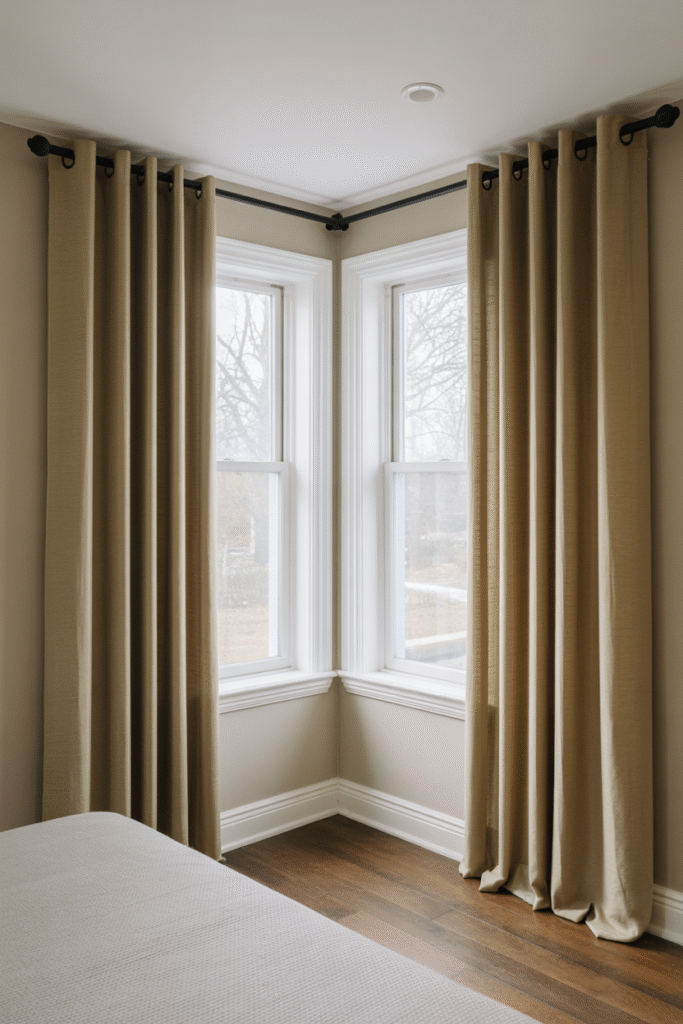 - Pair with linen side panels to add softness and nighttime depth.