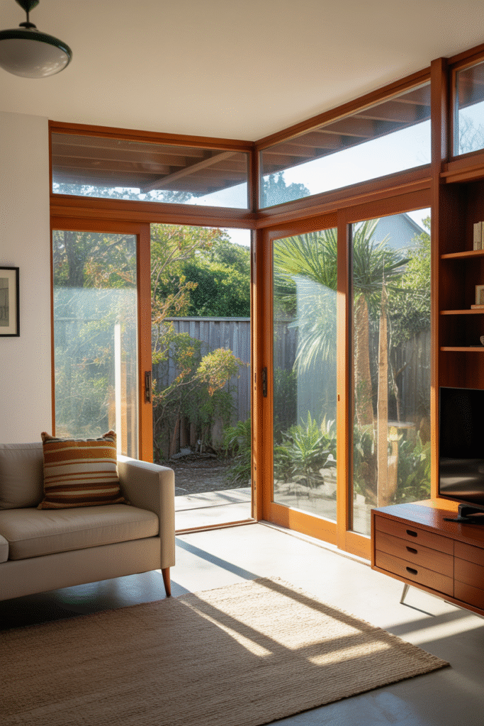 Large openings—sliders, picture windows—are mid-century hallmarks. Panel tracks handle them better than anything else.