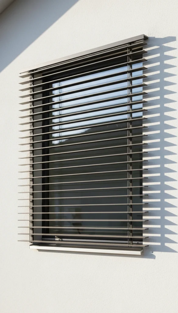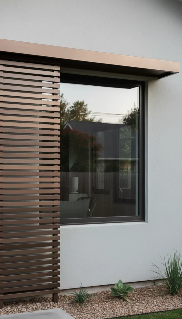 4. Slatted Metal Awning That Doubles as a Light Filter