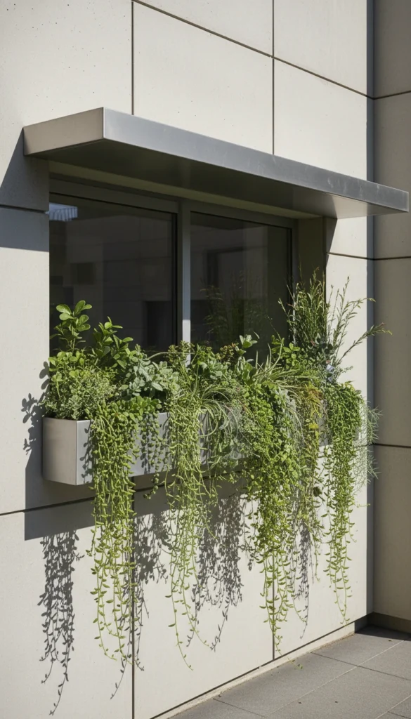 - Use: Place slim planters filled with trailing plants, succulents, or compact grasses