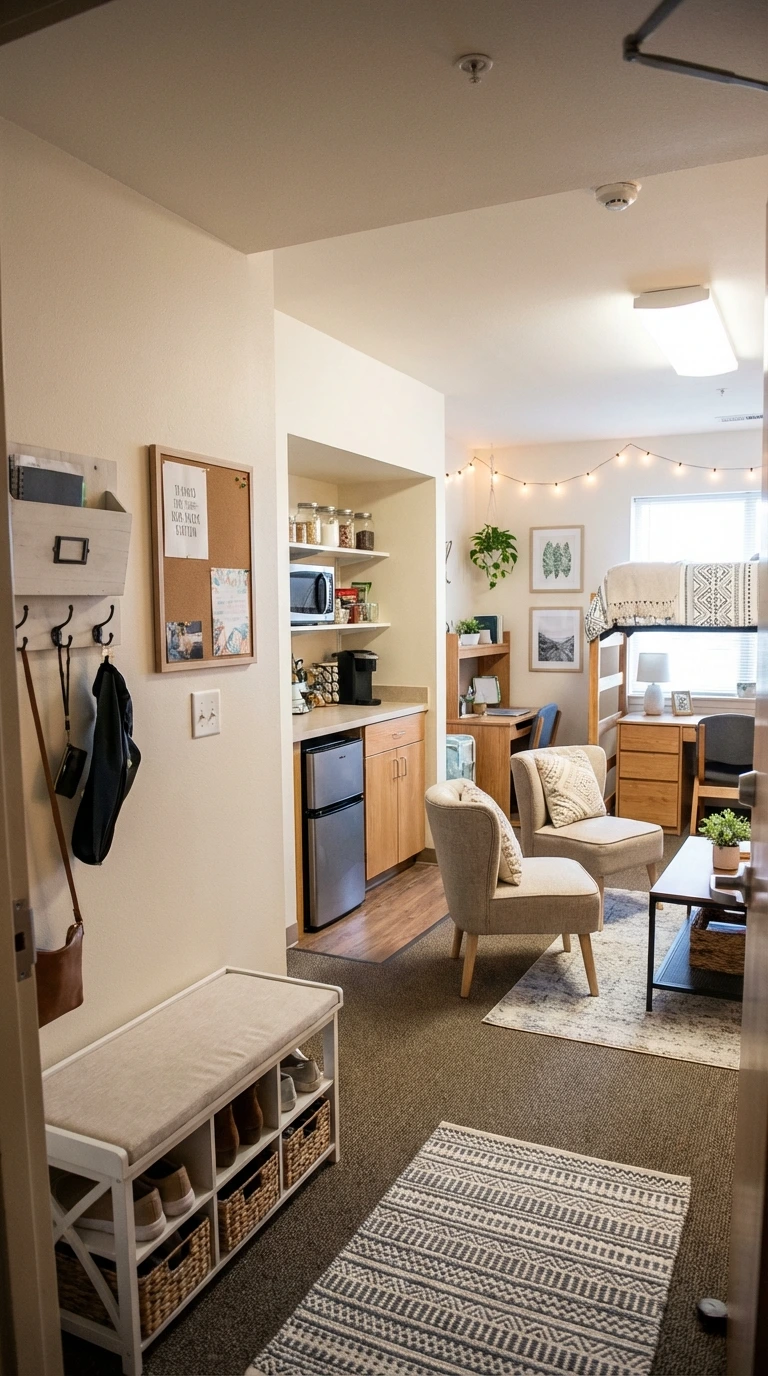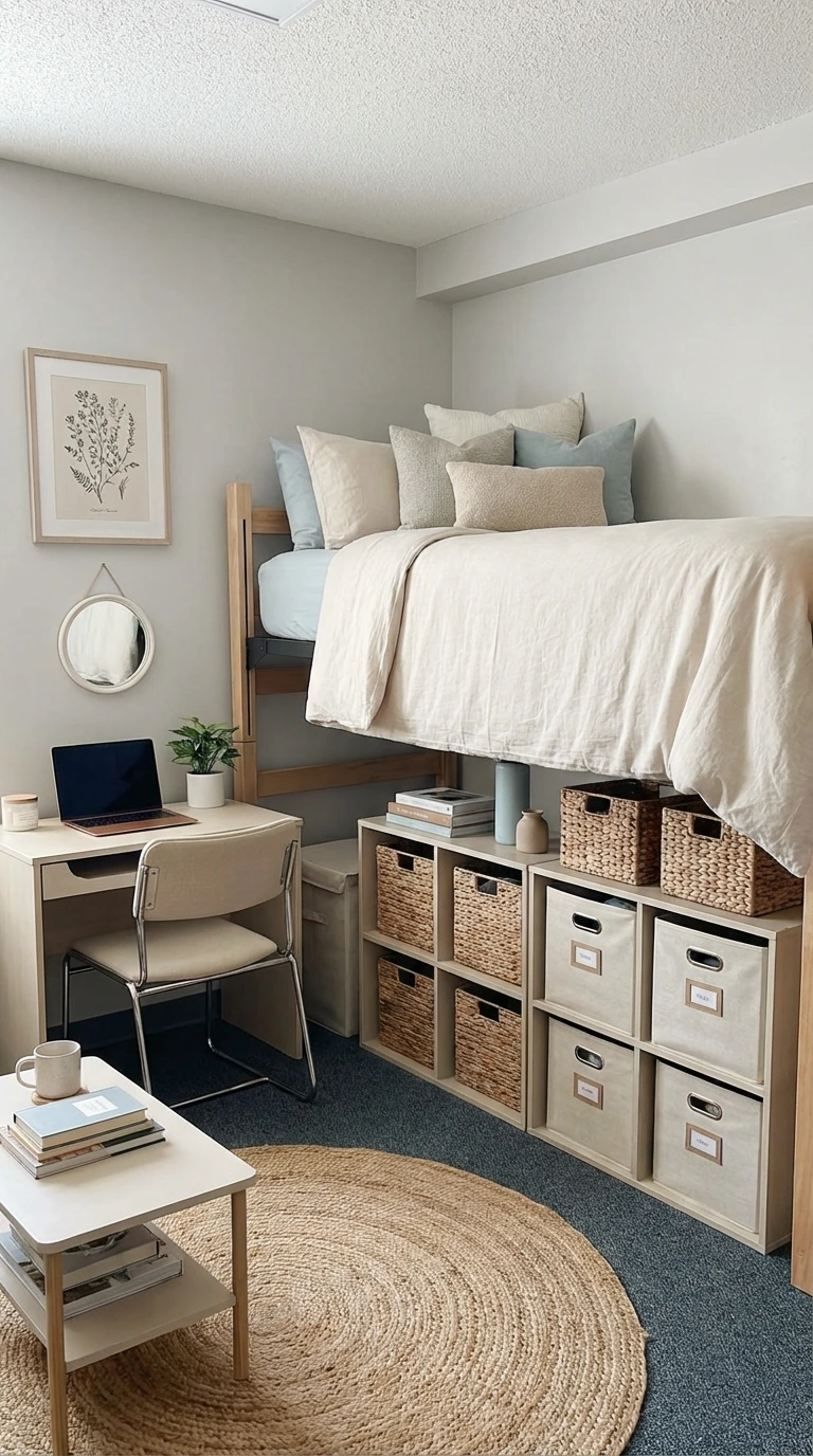 Small rooms feel bigger when every item has a job and every zone supports your routine. Start with a Small Dorm Room Ideas Layout, build upward with vertical storage, and choose a style that keeps the whole space looking intentional. Add cozy touches, keep your Dorm Room Setup practical, and contain the chaos with simple systems that work daily. You end up with a space that feels calm, functional, and genuinely yours—plus you can find your charger in under three minutes, which counts as a college victory.