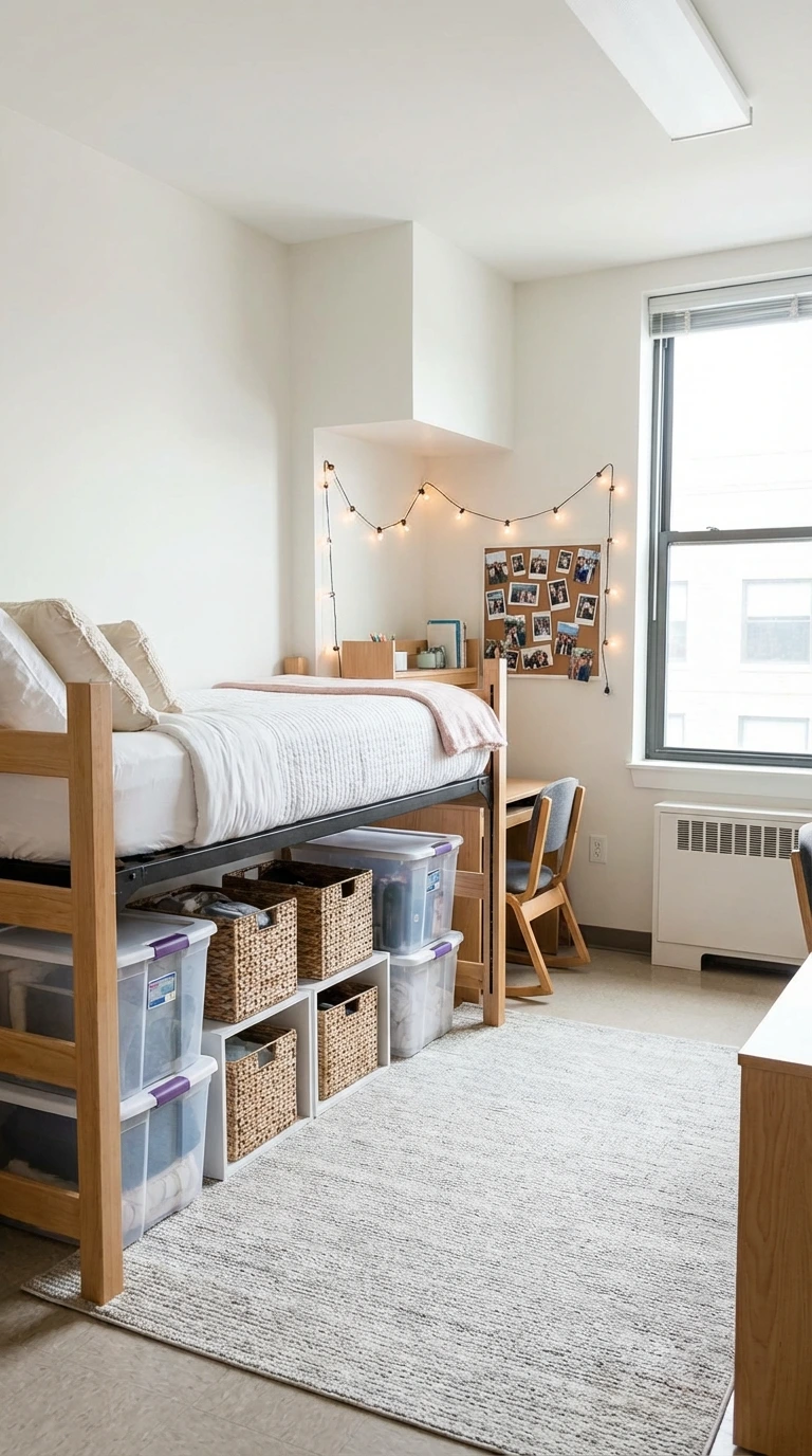 Under-bed space is your hidden superpower for Tiny Dorm Room Ideas.