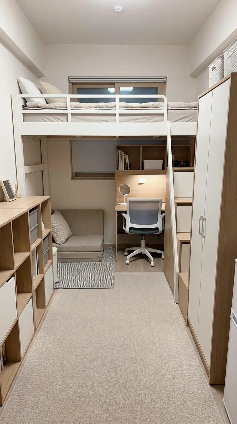 - Split space by function: one side “sleep,” one side “study,” or mirror layouts